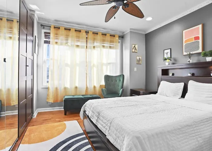 Cette villa Fishtown Fun 2Br Fireplace Philadelphie offre un accès rapide aux attractions de la ville telles que Nativity BVM Church à 6 minutes de marche.